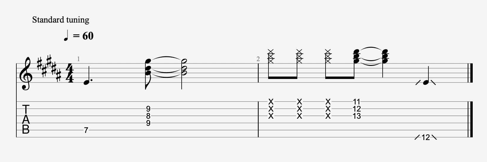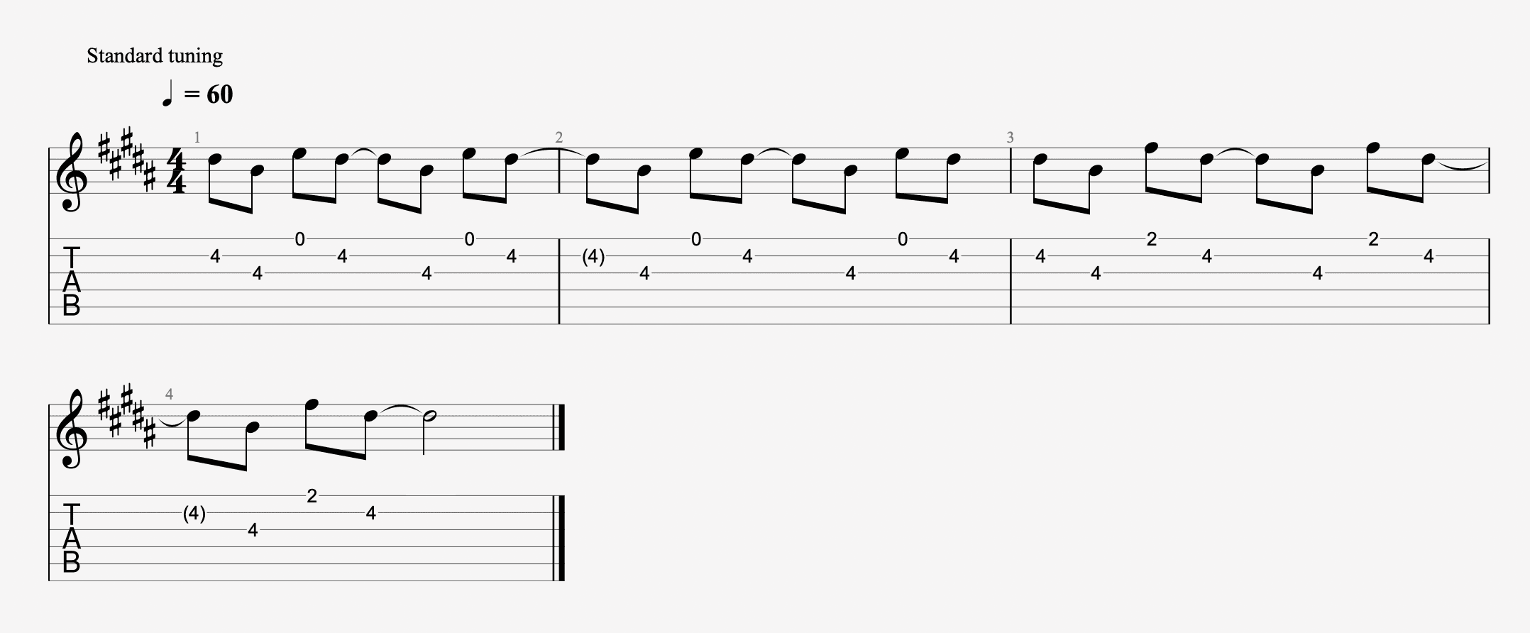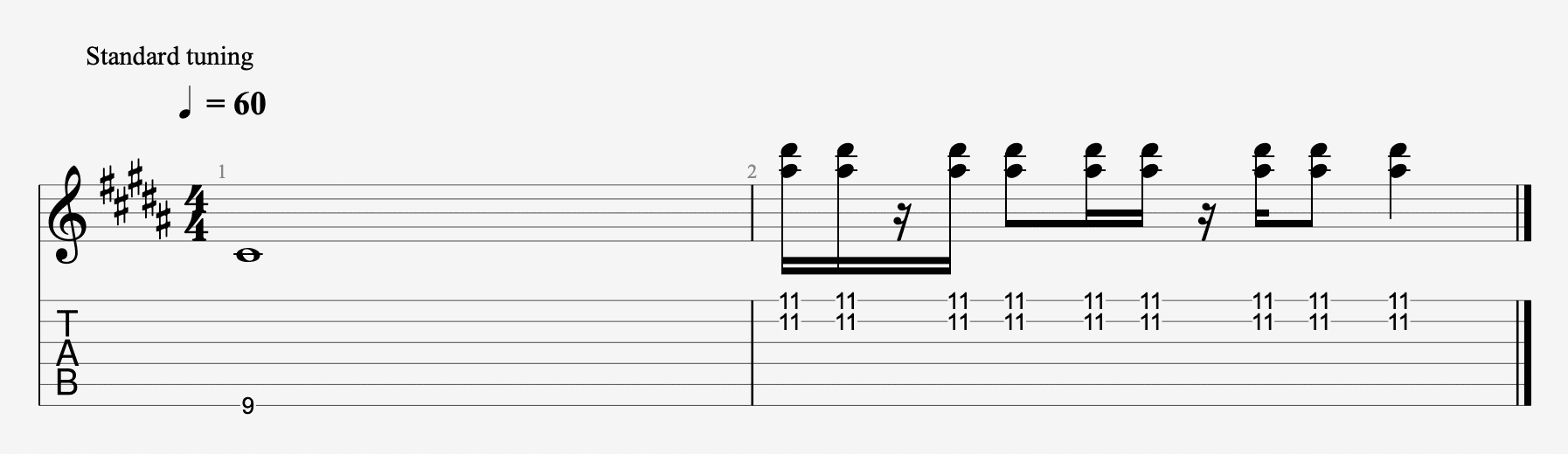 最後の 1小節、1小節目は単音を4拍弾くだけだから超簡単。