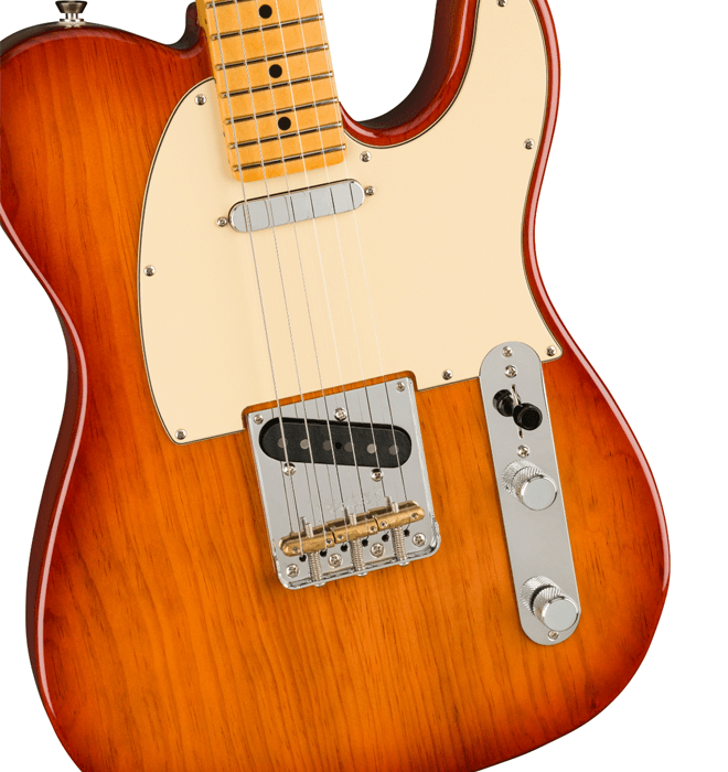 新しいV-Mod II Telecasterピックアップは、これまで以上に繊細で、Telecasterならではの独特なトゥワングを内包した魅力的なサウンドを実現しています。イントネーションが改善された"Bullet"サドルを備えた新しいトップロード/ストリングスルーブリッジは、各弦のイントネーションとテンション感を個別に調整することが可能で、今までのTelecasterブリッジの中で最も快適でフレキシブルなブリッジです。